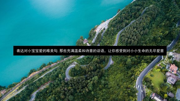 这些句子,每一句都充满了对小宝宝的爱意,它们像是一首首美妙的诗歌,诉说着对小宝宝生命的热爱和期待。它们让我们感受到,生命的美好,爱的力量,以及希望的重要性。让我们一起,用这些充满温柔和诗意的话语,来表达对小宝宝无尽的爱意,让这份爱,永远陪伴在小宝宝的身边,直到永远。